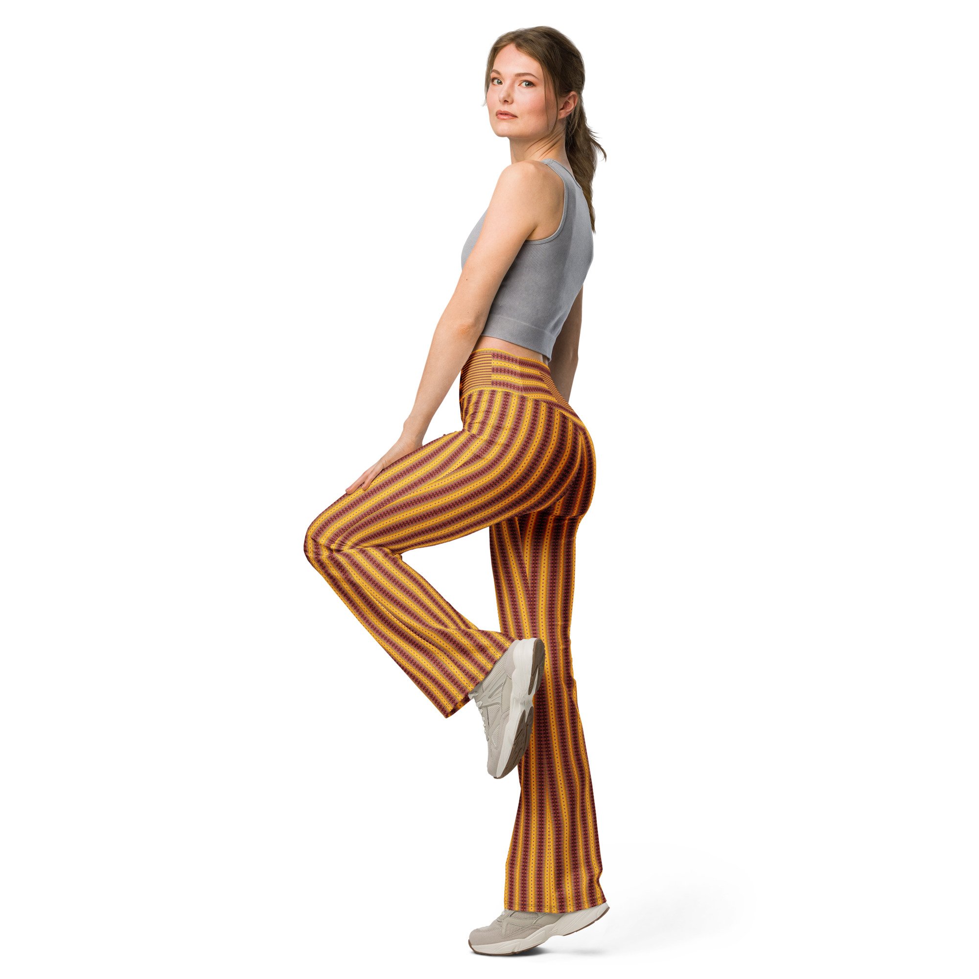 Designed to enhance your figure, these trendy leggings feature a high waist and a butt-lifting cut. The flared leg bottoms add a touch of style and make the leggings comfortable. Wear them on a walk, to the gym, or style them up with a bomber jacket or hoodie.
