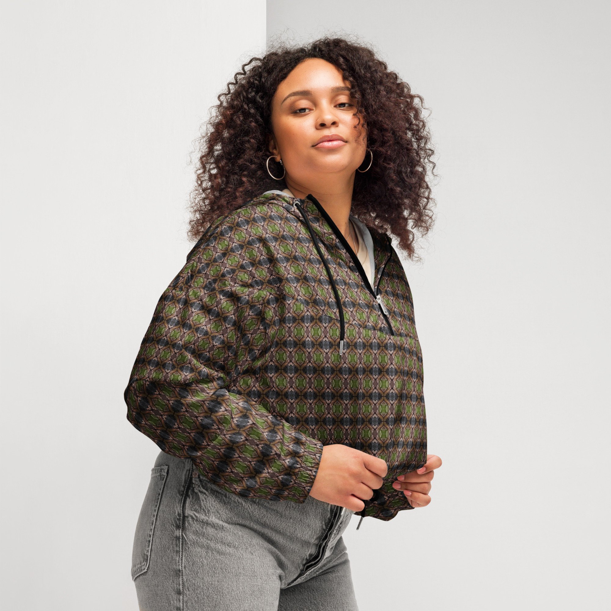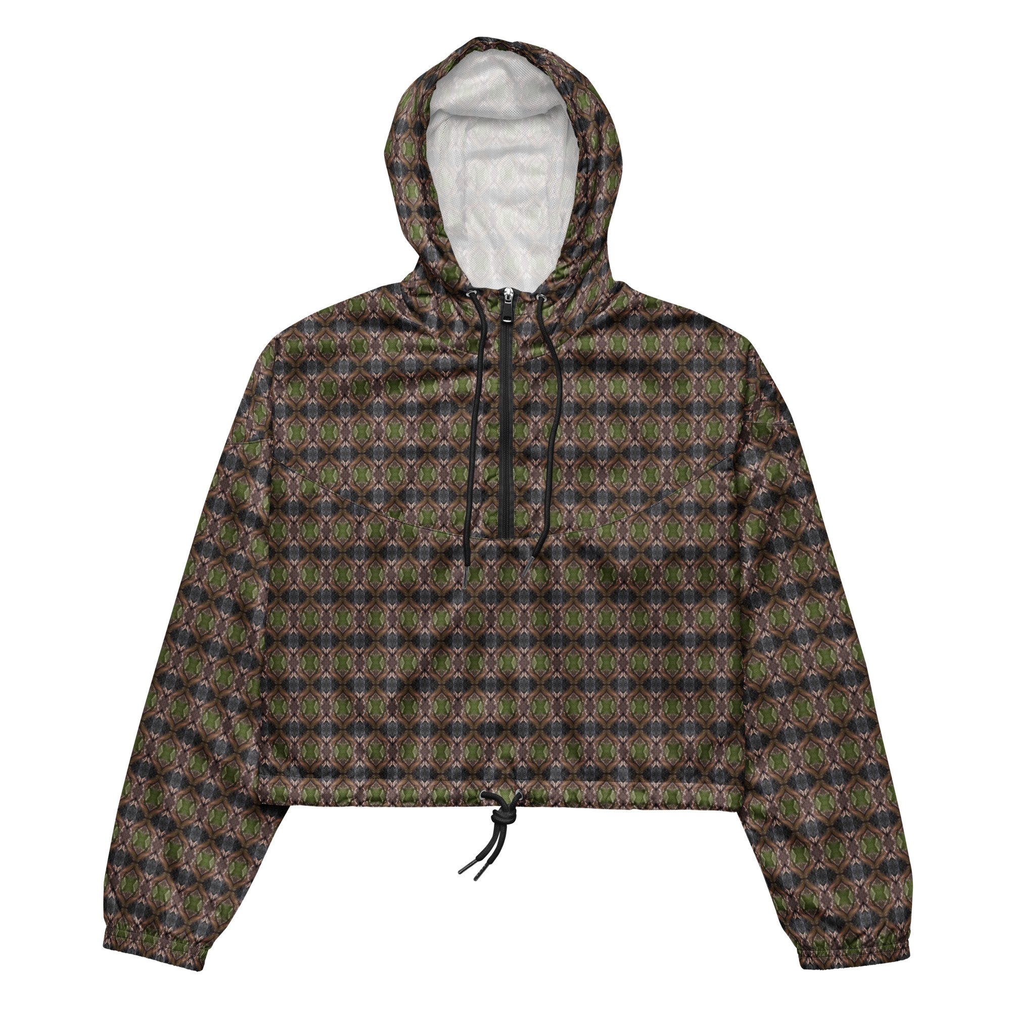 Hike in style without the rain getting in the way—this cropped windbreaker is lightweight, waterproof, and suitable for every kind of adventure. Features include side-slit pockets, breathable mesh lining, and adjustable drawcords on the hood and waist to support all your stylish outdoor looks.
