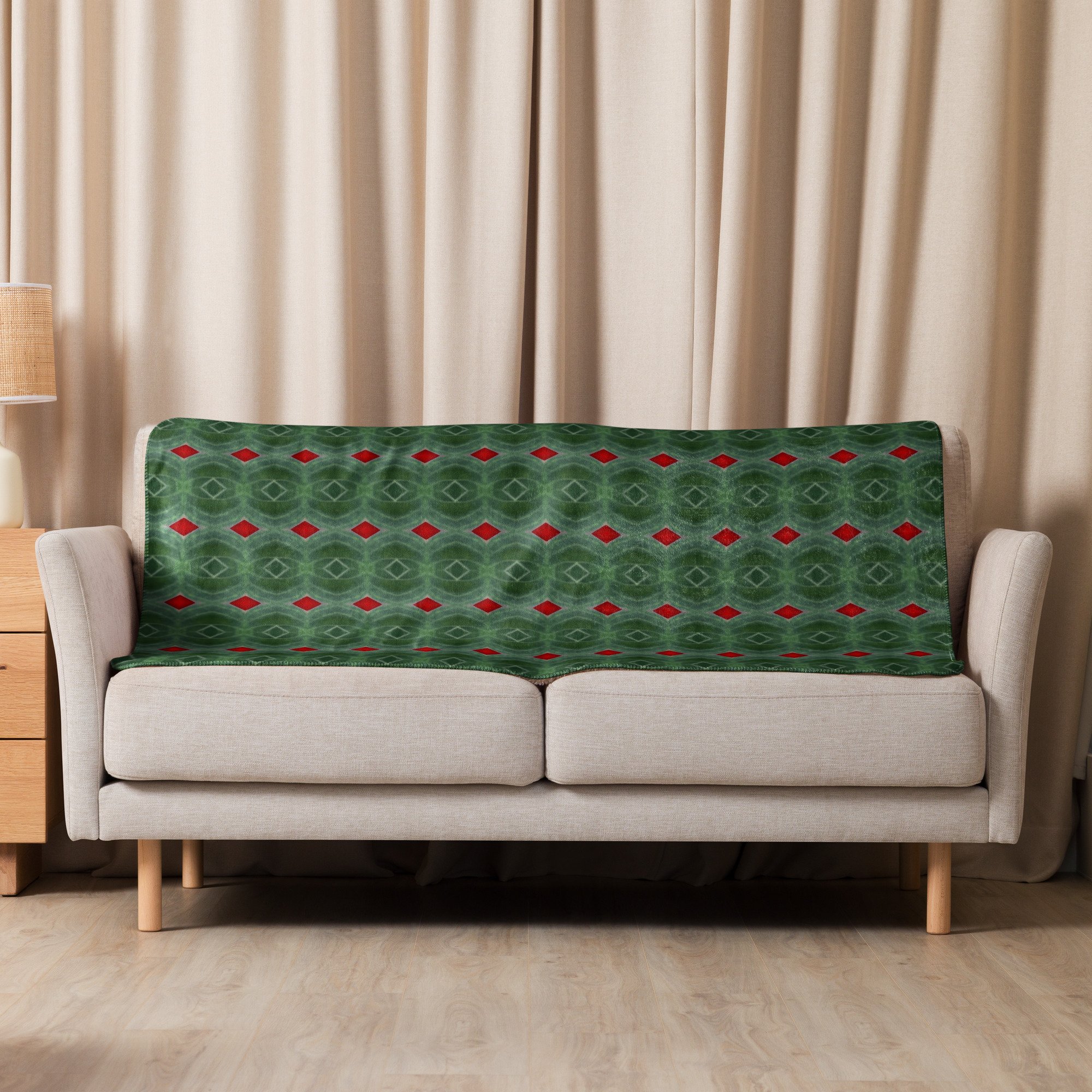 Sherpa Blanket - Red Diamonds in Emerald Forest
